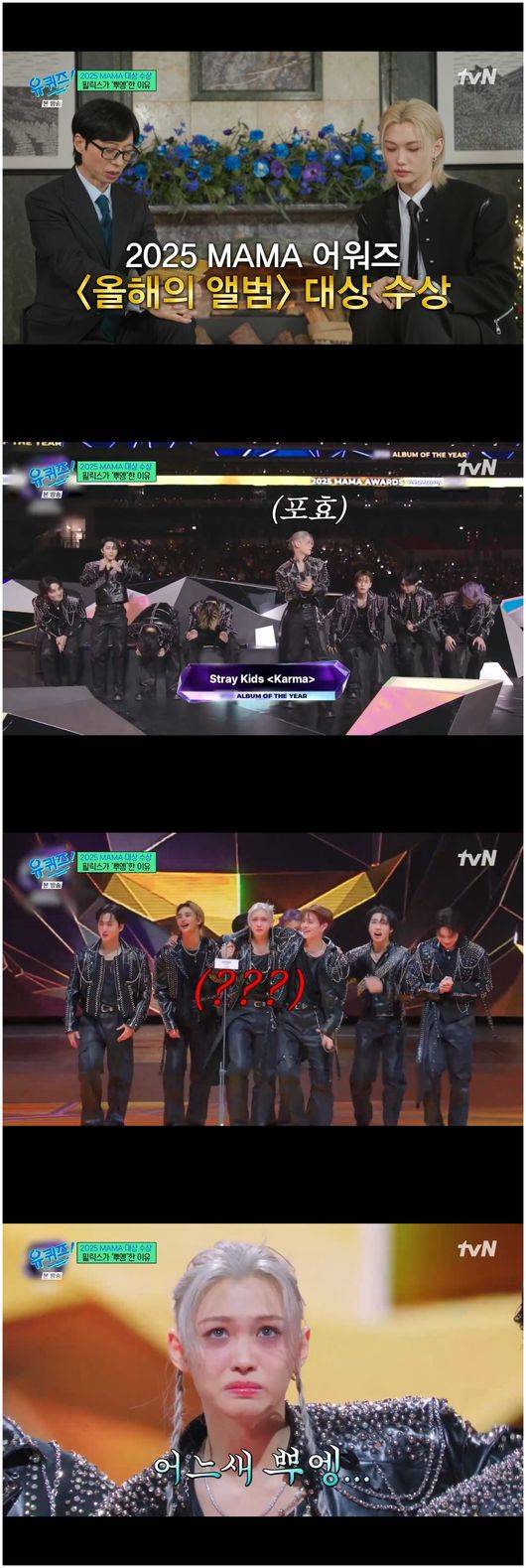스트레이 키즈는 얼마 전 MAMA 2025 올해의 앨범 상을 수상했다. 당시 필릭스는 가장 먼저 일어나 환호를 외쳤으나 무대에 올라 수상 소감이 시작되면서 울먹거려 화제가 됐다.