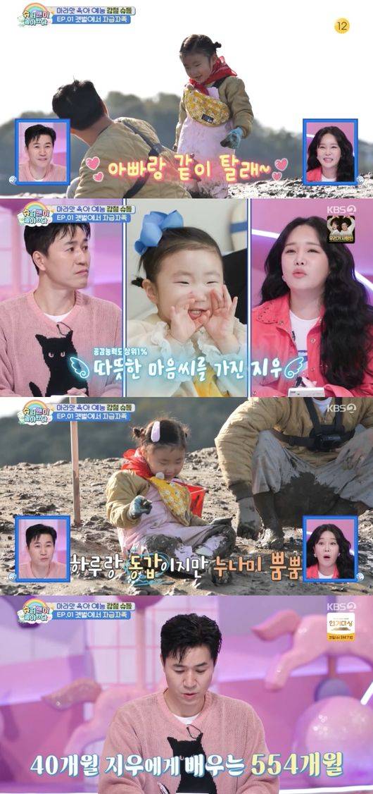 심지어 지우는 갯벌에 발이 빠진 아이들을 케어하는 아빠 장동민을 보더니 “아빠가 고생이다”라며 공감하기까지 했다. 김종민은 감탄했고, 랄랄은 “지우가 똑똑하다. 공감 능력도 많고”라며 기특해했다.
