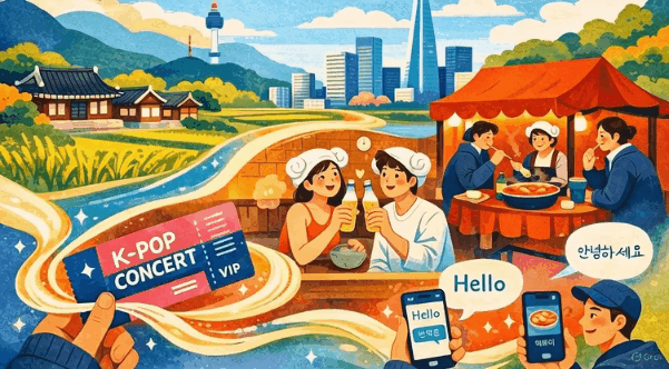 ◆찜질방서 식혜 한 잔…전국 곳곳 누비는 ‘K-Vibe’=단순 관람을 넘어 한국적 정서인 ‘K-Vibe’를 체험하려는 욕구가 강해졌다. 리포트는 공연 티켓 구매가 항공·숙박 예약으로 이어지고 다시 맛집 탐방과 뷰티 체험 등 파생 소비를 낳는 구조를 확인했다.
