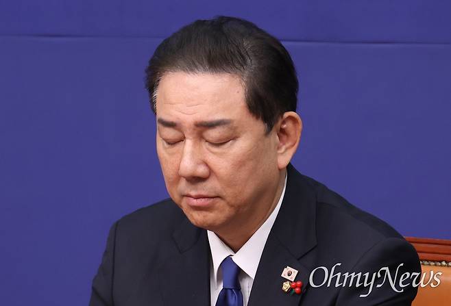 | ▲ 김병기 더불어민주당 원내대표가 24일 오전 서울 여의도 국회에서 열린 최고위원회의에 참석해 정청래 대표의 모두발언을 듣고 있다. |