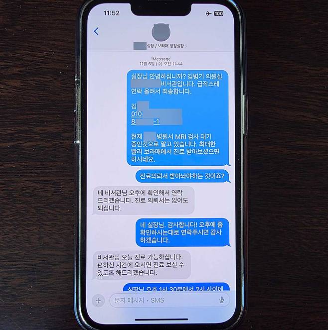 작년 11월, 비서관은 아들 김 씨의 주민등록번호 등을 보라매병원 행정실장에 보내며 "현재 인근 병원에서 MRI 검사를 대기 중인걸로 아는데, 최대한 빨리 보라매에서 진료 받아보셨으면 하신다"고 전했습니다.