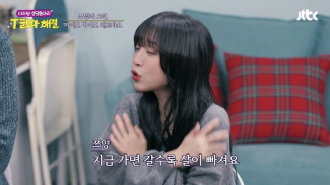 24일 방송된 JTBC 예능 '이과생 상담동아리-T끌모아 해결'에 출연한 쯔양은 “일상생활이 힘들 정도로 계속 배가 고프다”며 “배가 고플 때마다 계속 먹어도 되는지 늘 고민이 된다”고 솔직한 고민을 전했다.