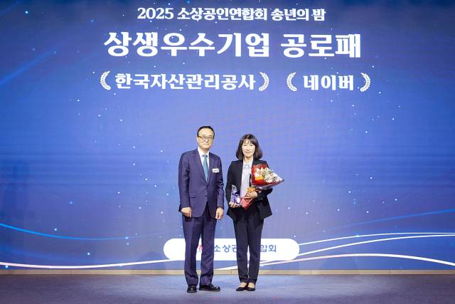 캠코(한국자산관리공사, 사장 정정훈)는 지난 12일 서울 영등포구 소상공인연합회가 페어몬트 앰버서더 서울 그랜드볼룸에서 개최된 2025 송년의 밤에서 상생우수기업 공로패를 받았다고 밝혔다.