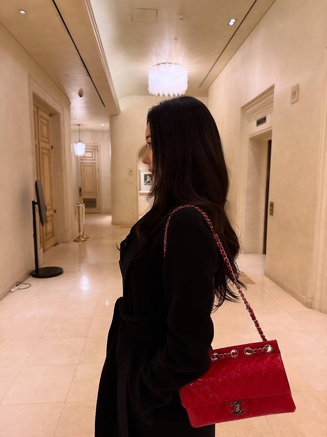 여기에 레드 컬러 백으로 블랙 룩에 화룡점정을 찍었다. 특히 오뚝한 콧날과 날렵한 턱선은 2000년 미스코리아 진 당선 당시와 비교해도 손색없는 ‘무결점 미모’를 입증했다.