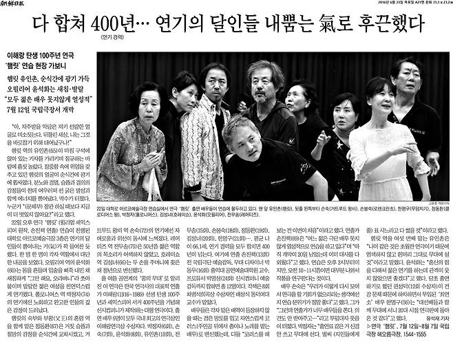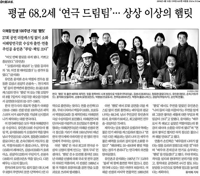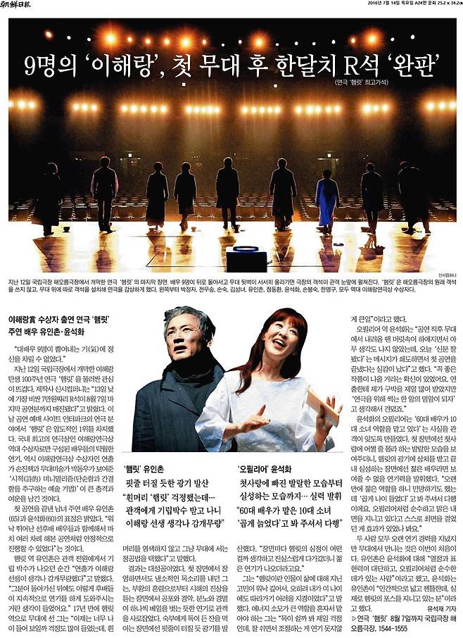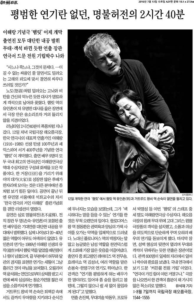 ‘마스터 클래스’ 공연 다음 달인 2016년 3월, 윤석화는 오랜만에 다른 명배우들과 협업을 하게 됐다. 이해랑 연극상 수상자만 출연하는 대작 ‘햄릿’이었다.