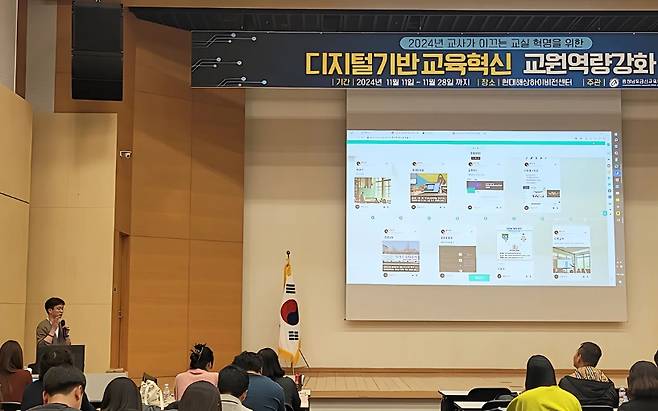 | ▲ 충남 지역 교원들을 대상으로 진행된 AI 디지털교과서(AIDT) 연수 현장. |