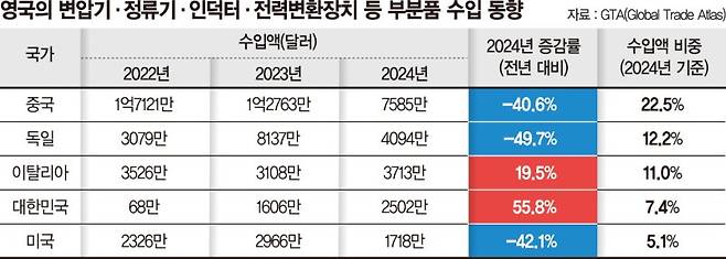25일 업계에 따르면 영국은 친환경 에너지 전환 정책에 발맞춰 전력망 확장에 본격적으로 나서면서 한국산 전력장비 수입 비중을 크게 늘리고 있다.