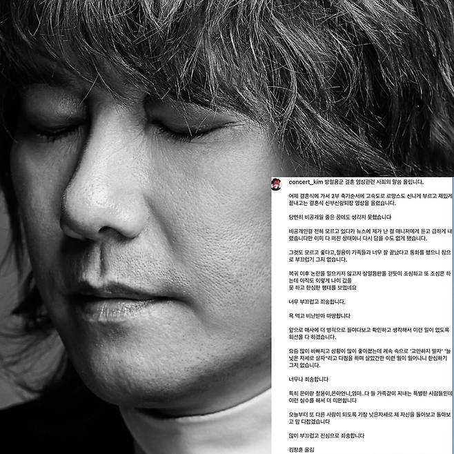 “비공개 결혼식 아니었다”...미르, 김장훈에 사과 “형님 덕분에 빛났는데 욕먹어 속상”
