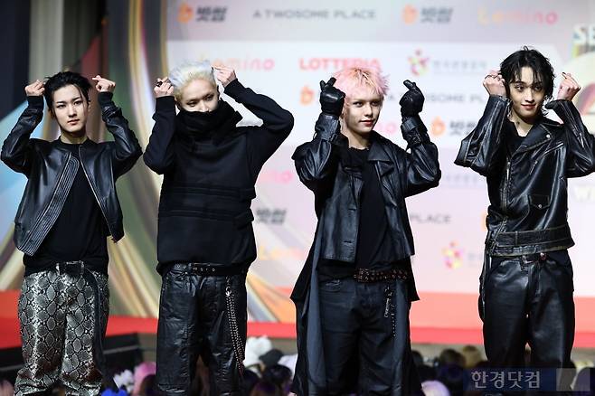 그룹 AxMxP(에이엠피)가 25일 오후 인천 영종도 인스파이어 아레나에서 열린 '2025 SBS 가요대전' 레드카펫 행사에 참석해 포토타임을 갖고 있다.