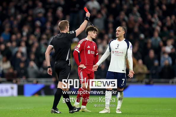 수적 열세 속 어려움을 겪었다. 이날 토트넘은 전반 33분 사비 시몬스가 버질 반 다이크를 향해 깊은 태클을 가하면서 반칙을 범했다. 주심은 비디오 판독(VAR) 확인 이후 시몬스에게 다이렉트 레드카드를 꺼내 들었다.