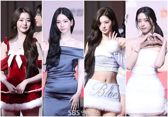 [SBS연예뉴스 | 백승철 기자] 아이브 장원영(왼쪽부터), 에스파 카리나, 엔믹스 설윤, 있지 유나가 25일 오후 인천 중구 인스파이어 아레나에서 열린 '2025 SBS 가요대전' 레드카펫 행사에 참석해 포즈를 취하고 있다.