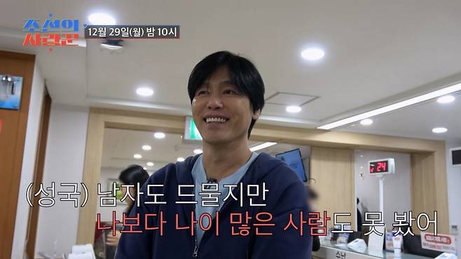 29일 방송되는 ‘조선의 사랑꾼’ 선공개 영상에는 최성국과 24세 연하 아내가 산부인과를 찾은 모습이 담겼다. VCR을 지켜보던 최성국은 접수 중인 아내와 달리 긴장했던 당시를 떠올리며 “당사자는 저렇게 의연한데 나는 많이 떨렸다”고 말했다.