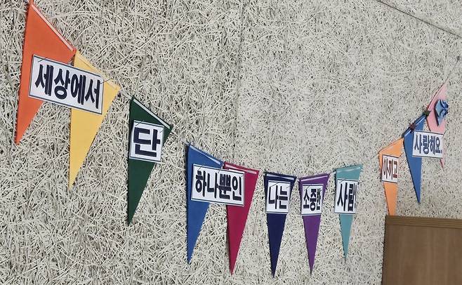 | ▲ 세상에서 단 하나 뿐인 나는 소중한 사람! 아끼고 사랑해요 디딤돌 학교의 교실에 게시한 환경물 |