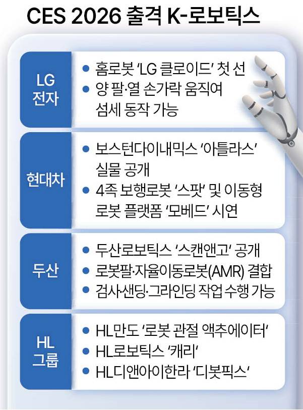두뇌에만 머물러있던 인공지능(AI)을 넘어 행동하는 피지컬(physical) AI의 시대가 도래하고 있다. 국내 기업들은 다음달 미국에서 열리는 세계 최대 정보기술(IT)·가전 박람회 CES 2026에서 최신 실물 로보틱스 제품을 첫 선보이며 본격 출사표를 던질 예정이다.