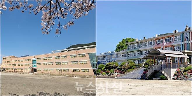| ▲ 120년 역사를 품은 삼천포초등학교가 대방초등학교와 통합해 2027년 새 학교로 다시 문을 연다. 사진 왼쪽 대방초등학교, 사진 오른쪽 삼천포초등학교. |
