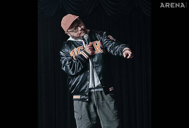 사실 이제규와 <아레나>는 초면이 아니다. 6년 전 Z세대를 다루는 인터뷰 기사에서 만난 반가운 사이다. 그동안 어떻게 지냈는지, 그 사이 변화는 없었는지 안부를 물었다. "부침이 없었다면 거짓말이에요. 코로나 팬데믹 시기에는 문화 활동 자체가 줄었잖아요. 개인적으로 성장하고 있는지 잘 모를 때 은퇴를 고민한 적도 있어요. 그런데 꾸준히 하다 보니 어느 정도 기량을 갖추게 되더라고요." 그 과정에서 업계를 이끌던 대니초, 피식대학이 주목받는 흐름도 힘이 됐다. "운도 많이 따랐어요. 무엇보다 무대에 매일 오르는 환경도 실력을 만들어준 것 같아요."