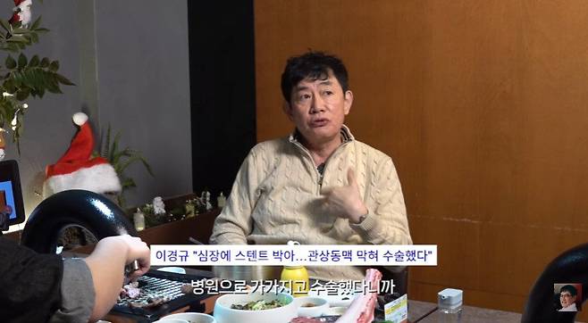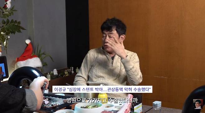 그러면서 이경규는 과거 '붕어빵' 녹화 당시를 회상하며 "내가 '붕어빵' 녹화하고 그때 내가 심장이 막힌 거다. '붕어빵' 녹화 끝나고 병원으로 가가지고 수술했다니까. 시술을"라고 말했다.