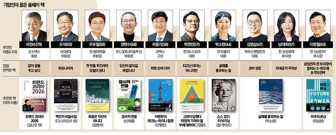 기업인은 현재를 넘어 내년의 화두를 전망해야 한다. 세계 1위 화장품 제조업자개발생산(ODM) 코스맥스의 33년 역사를 다룬 <같이 꿈을 꾸고 싶다>를 펴낸 이경수 코스맥스 회장은 <트렌드 코리아 2026>을 올해의 책으로 꼽았다. 매년 김난도 서울대 소비자학과 명예교수와 소속 연구진이 다음해 사회·경제를 움직일 키워드를 예측해 내놓는 트렌드 전망서 시리즈의 신간이다. 이 회장은 “붉은 말의 해 병오년의 향배를 살펴보기에 더할 나위 없는 책”이라며 “특히 인공지능(AI) 대전환 시대에도 여전히 답은 인간이라는 견해가 깊은 여운을 남긴다”고 말했다.