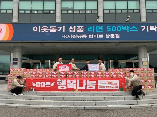 밀양시 ㈜서원유통 탑마트 삼문점(대표 이윤서·허태후)은 지난 24일 지역 내 취약계층 지원을 위해 라면 500박스(740만원 상당)를 밀양시에 기탁했다. 기탁된 물품은 복지 사각지대에 놓인 이웃들과 취약계층 가정에 전달될 예정이다.