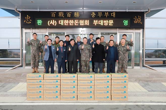 대한한돈협회 경남도협의회는 지난 24일 연말연시를 맞아 국군장병을 격려하고 우리 돼지 ‘한돈’의 우수성을 알리기 위해 1500만 원 상당의 돼지고기를 육군 제39보병사단에 전달했다.