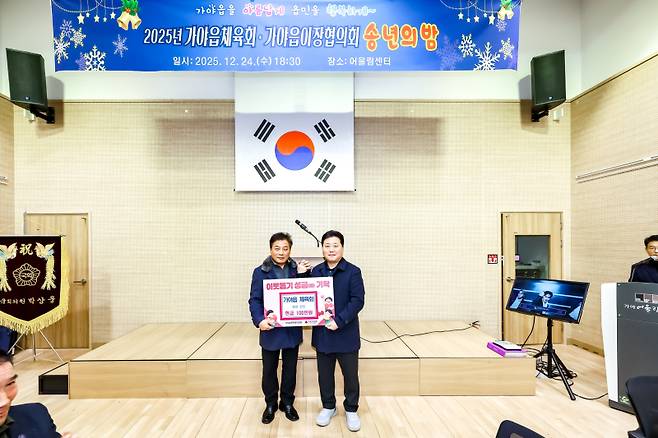 이와 함께 가야읍 체육회는 ‘희망2026 나눔캠페인’에 동참해 성금 100만원을 기탁했으며 해당 성금은 관내 저소득층 가구의 겨울나기 지원에 사용된다.