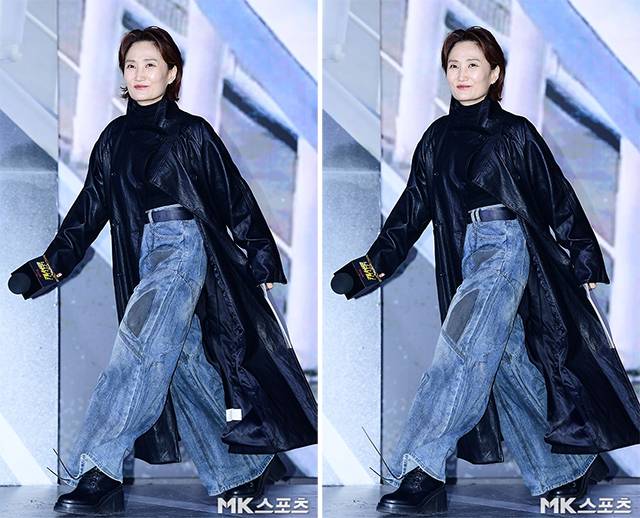 이날 제작발표회에서 박경림은 포근한 느낌의 폴라티에 와이드핏의 데님 팬츠를 매치했고, 그 위에 가운 느낌의 블랙 롱코트를 입고 무대에 올라 시선을 끌었습니다.