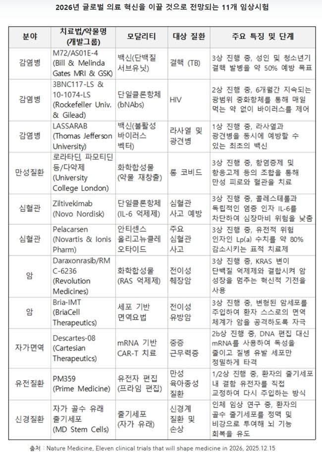 "암부터 유전자편집까지"…2026년 바꿀 임상 11선