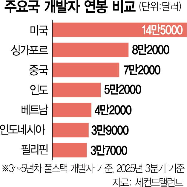 무엇보다 네팔 등 동남아 다수 국가는 베트남보다 인건비가 저렴하다. 글로벌 원격 근무 채용 플랫폼인 세컨드탤런트에 따르면 풀스택 5년 차 이하 경력자의 1년 연봉은 올 3분기 기준 인도네시아가 3만 9000달러, 필리핀은 3만 7000달러 수준으로 베트남(4만 2000달러)보다 낮다. 네팔이나 캄보디아는 베트남보다 절반가량 낮은 수준으로 알려졌다.