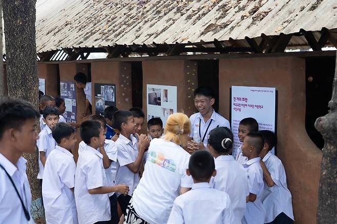 | ▲ 천 개의 희망 뉴 데이 스쿨 전시를 보는 학생들 |
