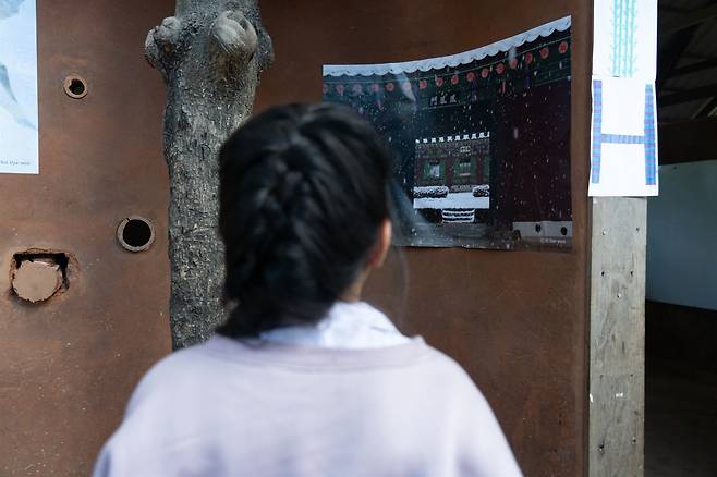 | ▲ 한국 풍경 사진을 바라보고 있는 뉴 데이 스쿨 학생 |