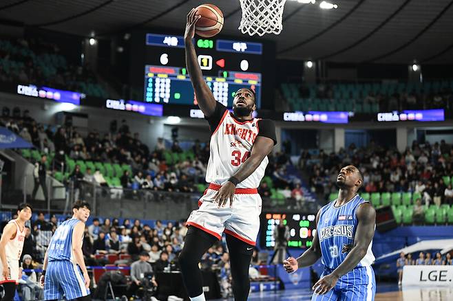 서울 SK는 27일 대구실내체육관에서 열린 2025~2026 LG전자 프로농구 정규리그 경기에서 대구 한국가스공사를 67–66으로 꺾었다. 시즌 14승(11패)째를 신고했다.