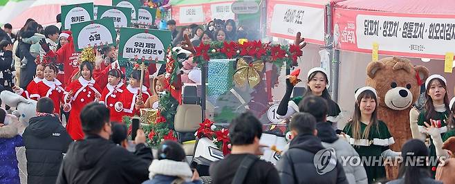 (임실=연합뉴스) 27일 전북 임실군 치즈테마파크에서 열린 임실 산타축제에서 행락객들이 산타 퍼레이드를 관람하고 있다. 축제는 오는 28일까지 열린다. 2025.12.27 [임실군 제공. 재판매 및 DB 금지]