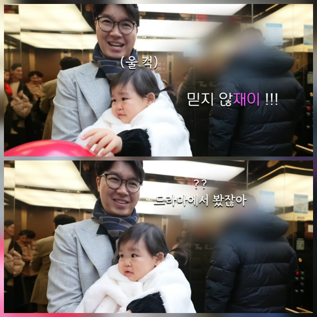 영상은 코미디언 손헌수의 딸 하송이의 첫 돌잔치 현장에서 촬영된 장면으로 시작된다. 박수홍은 “재이랑 인생 절친 하송이네 첫 생일날”이라며 현장을 소개했고, 엘리베이터 안에서 예상치 못한 상황이 펼쳐졌다.