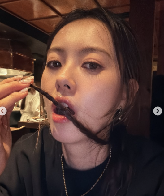 또 다른 사진에서는 머리카락을 살짝 입에 문 채 장난기 어린 표정을 지으며 편안한 매력을 드러냈다. 특별한 연출 없이도 또렷한 이목구비와 작은 얼굴이 돋보이며, 평범한 일상 속 순간마저 화보처럼 만들어냈다.