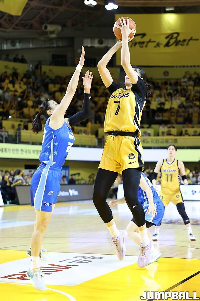 청주 KB스타즈는 27일 청주 KB스타즈 챔피언스파크에서 열린 BNK금융 2025~2026 여자프로농구 아산 우리은행과의 맞대결에서 66-68로 패배, 4연승 도전에 실패했다.