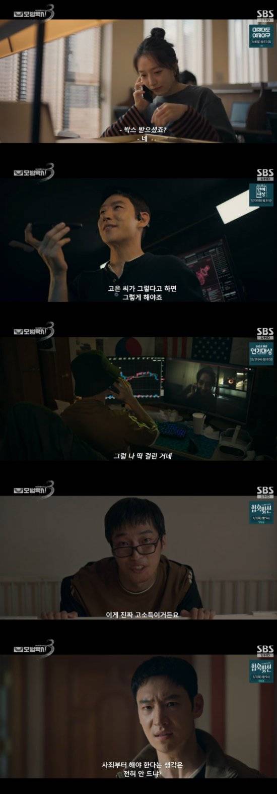 27일 방송된 SBS 금토드라마 '모범택시3' 12회에서는 사기꾼들과 접점이 있는 삼흥도라는 섬에 들어간 김도기(이제훈 분), 장성철(김의성)의 모습이 그려졌다.