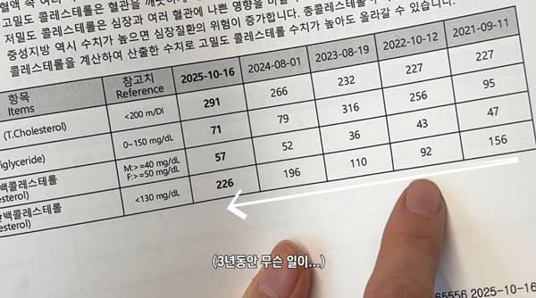 지난 25일 '윤혜진의 What see TV' 채널에는 엄태웅, 윤혜진 부부가 함께 건강검진 결과를 확인하는 영상이 게재됐다. 해당 영상에서 엄태웅의 LDL 콜레스테롤(저밀도 콜레스테롤) 수치는 226mg/dL, 윤혜진의 수치는 177mg/dL로 공개됐다. 윤혜진은 “부부가 일심동체 고지혈증 커플이 됐다”고 말했다.