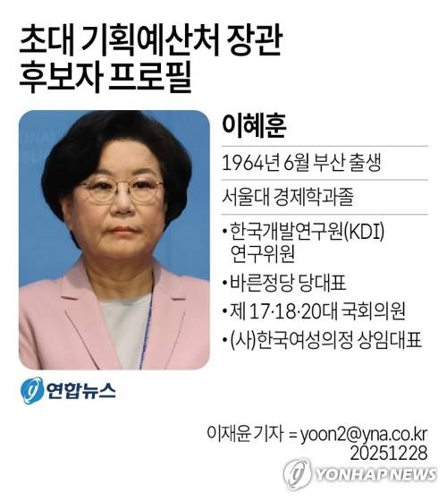 (서울=연합뉴스) 이재윤 기자 = 보수진영 출신 인사인 이혜훈 전 의원이 이재명 정부의 초대 기획예산처 장관으로 파격 발탁됐다.