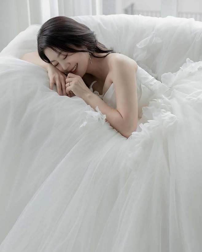 “설레는 요즘” 14기 옥순, 순백의 웨딩드레스 자태…승무원 출신 남다른 핏