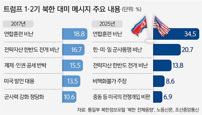 도널드 트럼프 2기 행정부가 출범한 올해 북한이 미국을 향해 내놓은 메시지의 주요한 특징이다.