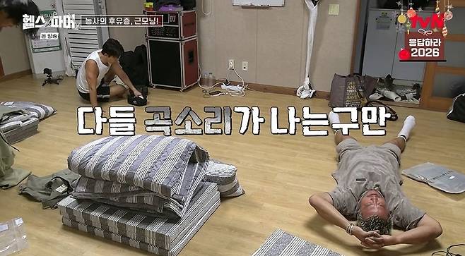 추성훈, 정대세, 허경환, 아모띠, 백호가 근육통을 호소했다.