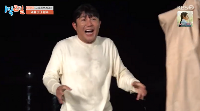 [TVis] “기절할 것 같아”…조세호, 겨울바다 입수→하차 (‘1박 2일’)