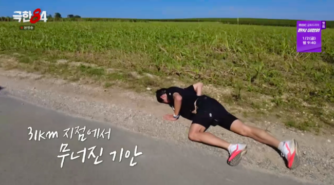 하다 하다 근육 경련까지 겹치면서 위기를 맞이하는데. 기안84는 “경련이 처음 온다. 기록이고 뭐고 완주나 할 수 있을지 모르겠다는 느낌이 들더라”라며 최악의 컨디션에 전날 술 마신 자신을 다시 한번 자책했다.