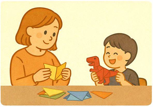 아이가 색종이로 접어 달라고 하는 것이 점점 더 고난도가 돼 난감했다. 완성하려고 20분, 30분을 낑낑대며 접기도 했다. 어떨 때는 영상을 보고도 대체 어떻게 접으라는 것인지 몰라서 답답함에 짜증이 났다. 그런데 신기하게도 한번 접고 나면 그다음은 쉬워진다. 20분 걸리던 것을 5분 만에 접는다. 덕분에 이제는 티라노사우루스나 전투 비행기, 드래곤 미니카 같은 것도 접을 수 있는 사람이 됐다. 전혀 할 줄 모르던 것을 할 줄 아는 사람이 됐다. 대단한 것은 아니어도 무언가를 할 줄 아는 사람이 된다는 것은 마법 같은 일이다. 이전과 이후가 전혀 달라지니 말이다. 종이접기 용어도 많이 배웠다. ‘대문 접기’나 ‘삼각 주머니 접기’처럼 자주 활용하는 접기의 방식에는 이름이 있다. 영상 속 종이접기 선생님이 “자, 이번엔 대문 접기를 해볼게요”라고 말하면 선생님의 손동작을 보지 않아도 저절로 내 손이 움직였다. 종이접기에서 가장 핵심은 접는 선을 손톱 끝으로 꾹꾹 눌러 주는 것이다. 사소한 것처럼 보이지만 얇은 종이를 겹겹이 접어 모양을 만드는 것에 있어서 가장 기본이자 중요한 꿀팁이다.