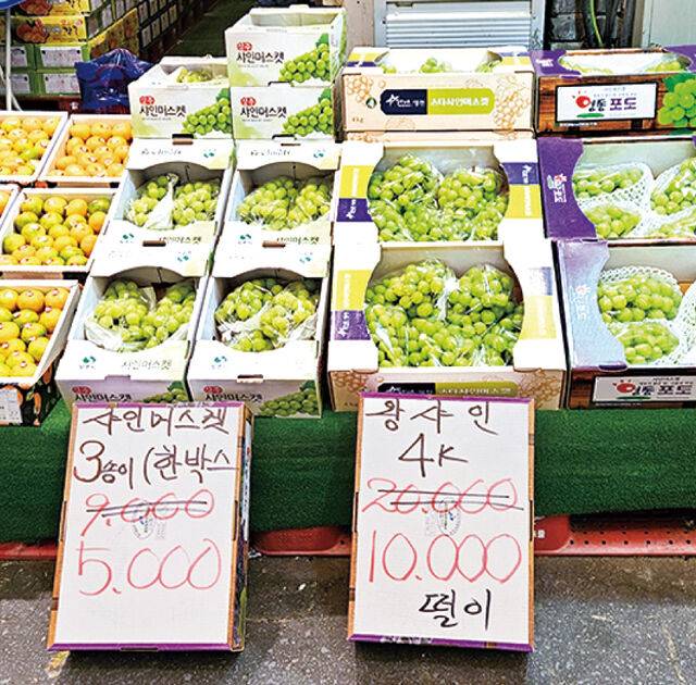 샤인머스캣 시세가 5년째 내리막길을 걸으며 포도산업 위기론이 확산했다. 10년 전 국내 첫 도입 당시 샤인머스캣은 고당도와 아삭한 식감으로 높은 시세에 거래됐다. 하지만 재배면적이 급속히 늘어나면서 품질관리가 제대로 이뤄지지 않았고 소비부진에 따른 시세 하락이 심화했다. 정부·농가는 ‘글로리스타’ ‘퀸니나’ ‘코코볼’ 등 대체품종 육성·보급에 나섰다. 가공용 소비를 늘리고 대량 수요처를 발굴해야 한다는 목소리가 높았다.