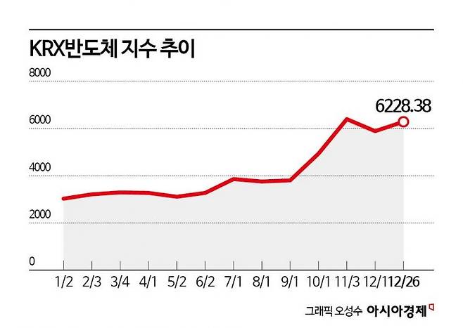 삼성전자와 SK하이닉스의 상승세에 힘입어 KRX반도체지수도 연초 2950선에서 6000선으로 껑충 뛰었다. 코스피 역시 지난 10월 사상 최초로 4000선을 돌파했고, 두 회사의 합산 시가총액은 1100조원을 넘어섰다.