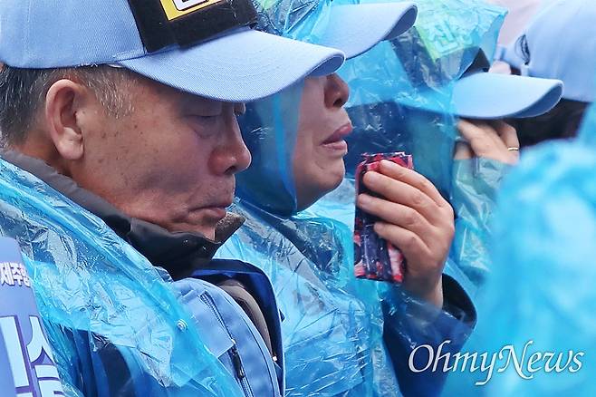 | ▲ 고 김성호씨의 부모님 김영필·김경숙씨가 지난 20일 서울 보신각에서 진행된 '서울 시민추모대회'에 참석해 있다. |