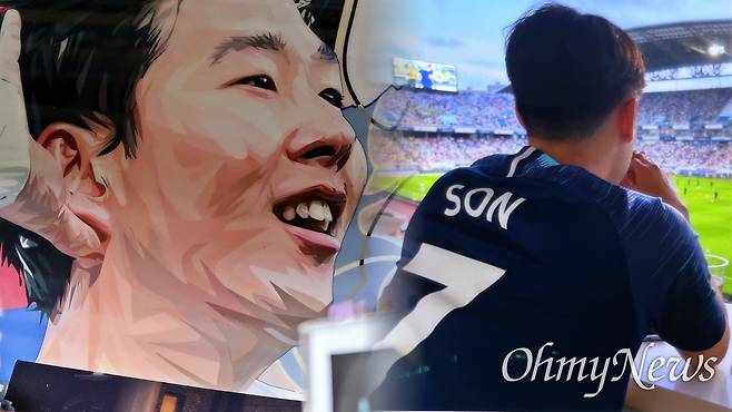 | ▲ 고 김성호씨는 축구를 좋아했다. 참사 후 약 1년이 지난 23일, 그의 방엔 여전히 손흥민 선수의 얼굴이 그려진 액자(왼쪽)가 놓여 있다. 오른쪽 사진은 손흥민 선수의 토트넘 유니폼을 입고 축구장을 찾아 찍은 사진이다. |