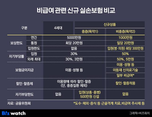 당초 금융당국은 비중증 비급여는 비급여 관리 효과 등을 보면서 향후 출시시기를 확정한다는 계획이었다. 현재 관리급여 지정을 통한 관리가 이뤄지고 있어 비중증 비급여 특약도 5세대와 함께 출시한다는 계획이다.