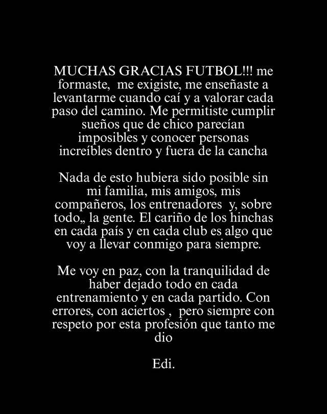 보카 주니어스 팬 계정인 '아날리틱스 보카'가 카바니가 직접 남긴 것처럼 꾸민 은퇴 메시지를 게시하며 혼란이 시작됐다.